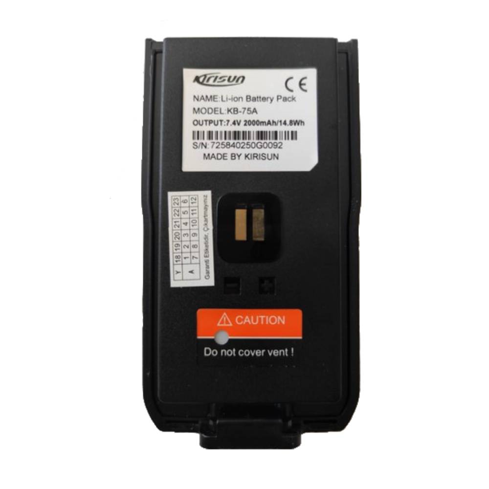 Kirisun telsizler için genel uyumlu 7.4V 2000mAh Li-ION batarya. Yüksek kapasite ve dayanıklılık sunar. Uzun süreli saha çalışmalarında güvenilir enerji sağlar. Çok sayıda modelle uyumludur.